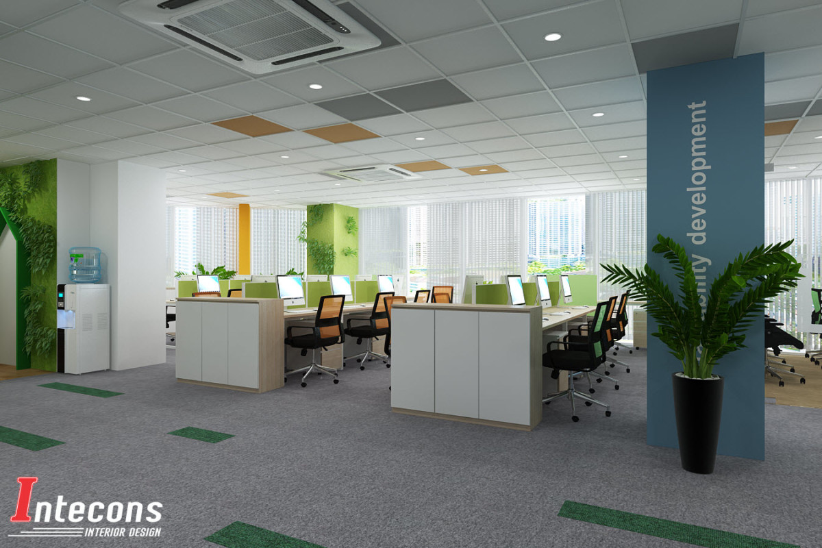 Công Ty TNHH Thiết Kế - Thi Công INTECONS, với đội ngũ kiến trúc sư giàu kinh nghiệm đã áp dụng nhiều phương án thiết kế nội thất mới lạ, độc đáo và tận dụng lợi thế phong thủy nhằm tạo sự thoải mái không gian và nâng cao tối đa công năng làm việc bên trong văn phòng công ty bạn.