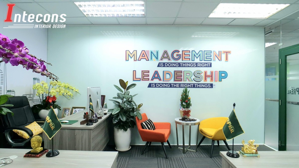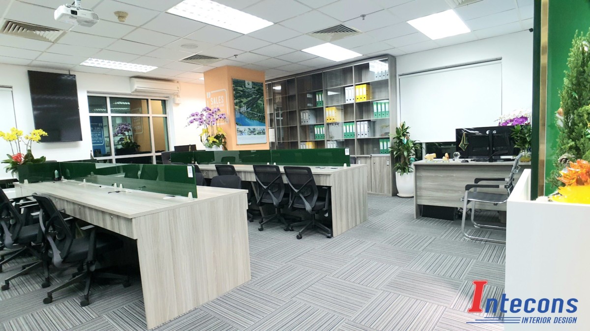 Công Ty TNHH Thiết Kế - Thi Công INTECONS, với đội ngũ kiến trúc sư giàu kinh nghiệm đã áp dụng nhiều phương án thiết kế nội thất mới lạ, độc đáo và tận dụng lợi thế phong thủy nhằm tạo sự thoải mái không gian và nâng cao tối đa công năng làm việc bên trong văn phòng công ty bạn.